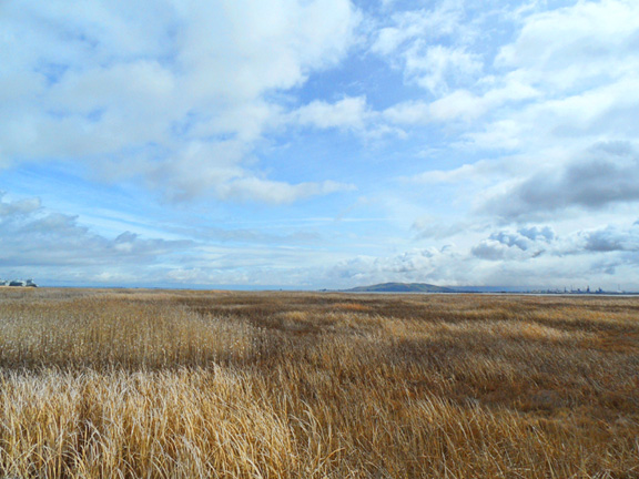 The Levee Walking Trail offers a just-a-little-above-water-level view of the Suisun Bay.