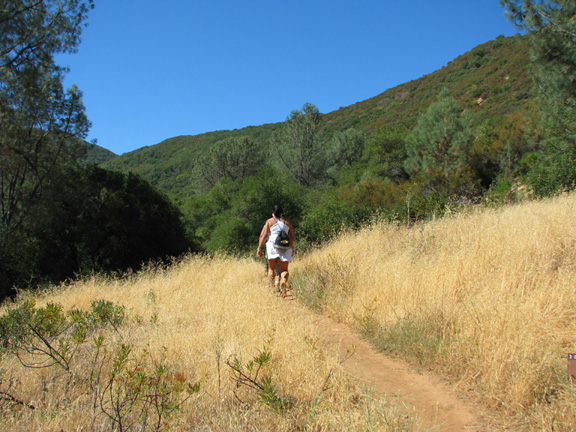 Looking down the streambed in summer. The water in the creek runs about 7 months out of the year.
